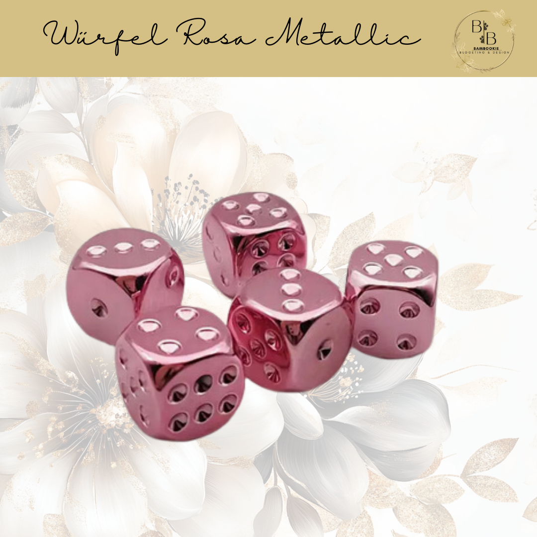 🎲 Stylischer 6er-Würfel – in Rosa Metallic, Gold Metallic & Schwarz Matt 🎲
